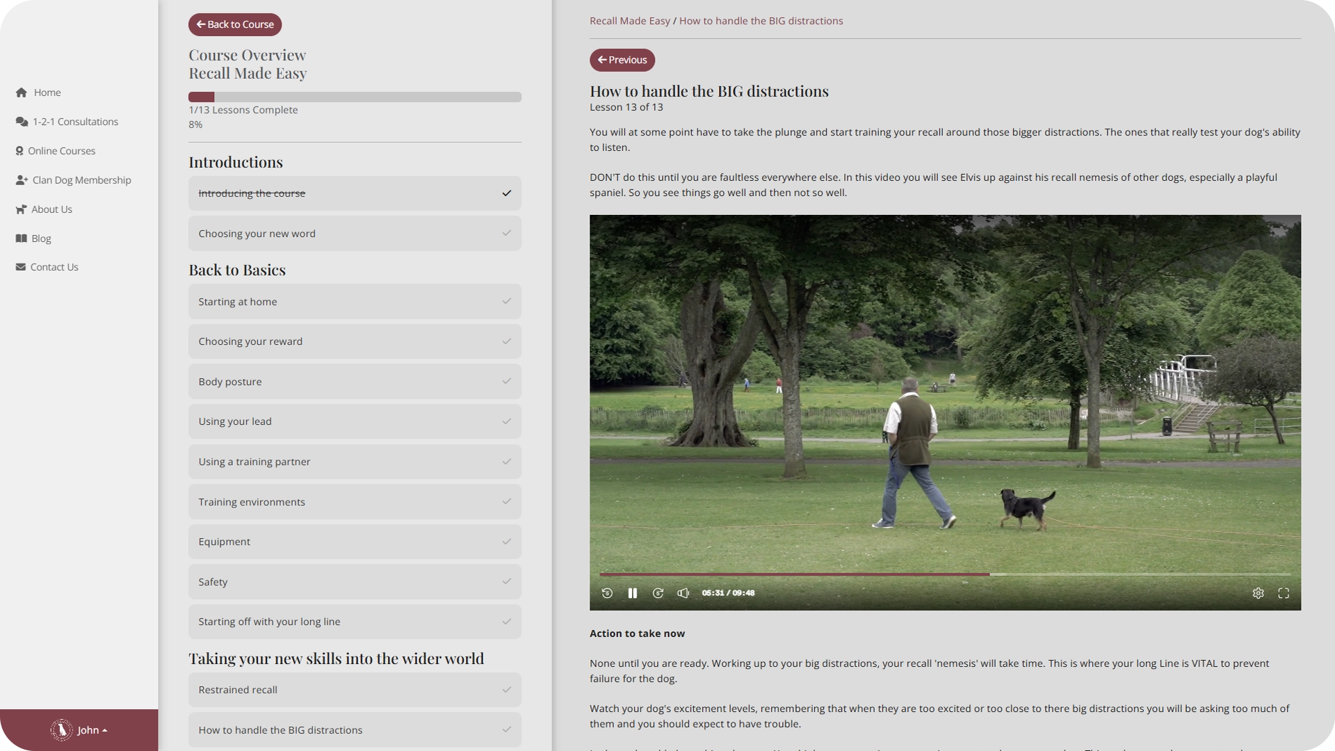 The Clan Dog membership also includes full, complimentary access to our range of premium dog training courses. The courses offer a structured and comprehensive approach to dog training, designed to address specific issues that many dog owners struggle with. Fully online step-by-step guidance combined with engaging video content and practical exercises.